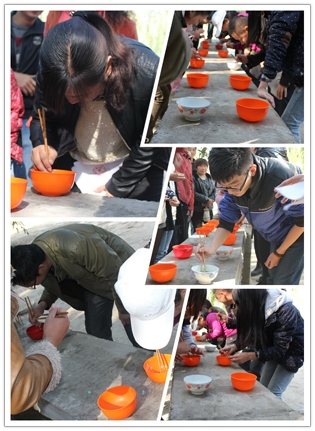 本次活動主要目的之一就是團隊協作,所以“玩游戲贏食材,美食廚藝大比拼”特別應景兒。選號、分組、游戲規則說明,各小組推薦參賽選手,挽袖子,上場,預備,開始……..好一個漂亮流暢的進程動作,“碗中運珠”的游戲一開始就吸引了現場眾多人的圍觀,歡笑聲,喝彩聲響成一片,參賽選手個個都不敢懈怠,雙目圓睜,可是小小玻璃珠子就是調皮,它們不是不上筷子,就是跳到碗外邊去了,甚至進了碗又神奇般地再次跳了出來。感嘆聲、歡笑聲頓時響成一片。“不行,有人作弊,這顆珠子不能算”。評委桂娟的眼睛何其明亮,現場一次沸騰起來,歡樂也不能破壞游戲規則,經過緊張激烈的角逐,第一名為:第六組,成績為26顆;第二名為:第二組,成績為16顆;第三名為:第三組,成績為12顆;第四名為: 第五組,成績為11顆;第五名為:第四組,成績為10顆;第六名為:第一組 ,成績為6 顆。